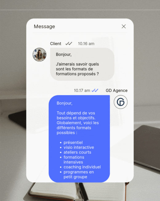 Mon approche est directe et humaine, avec une pédagogie claire et accessible, des outils immédiatement applicables et des résultats mesurables dès la première heure, le tout soutenu par une qualité d’écoute rare dans l’univers de la formation.